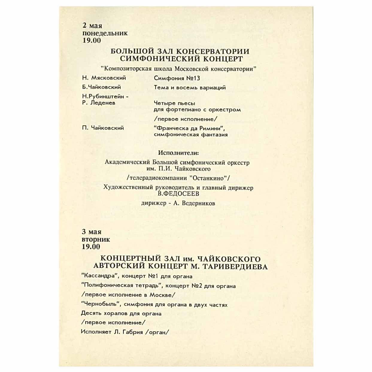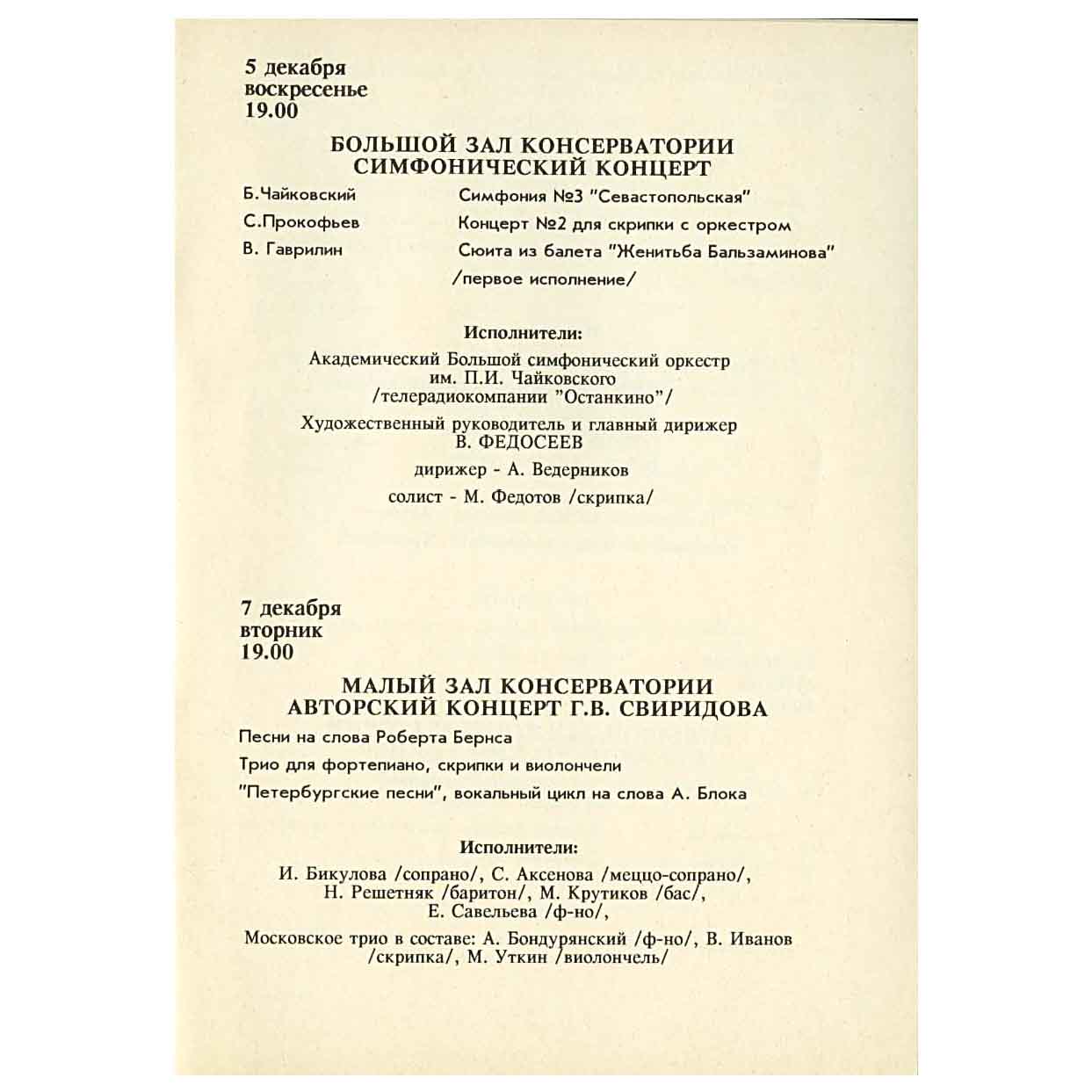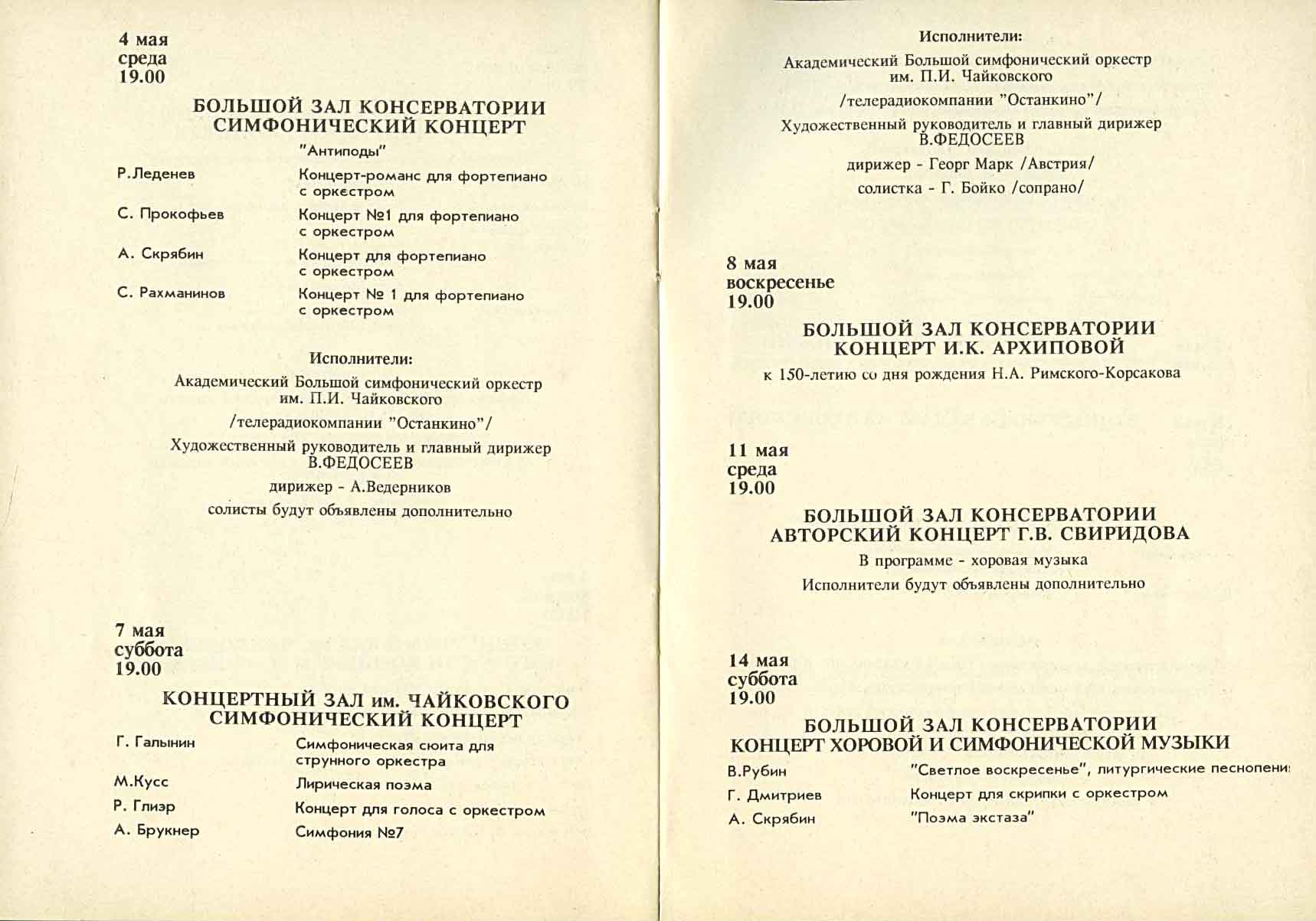 программы концертов