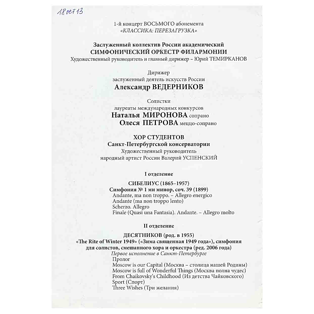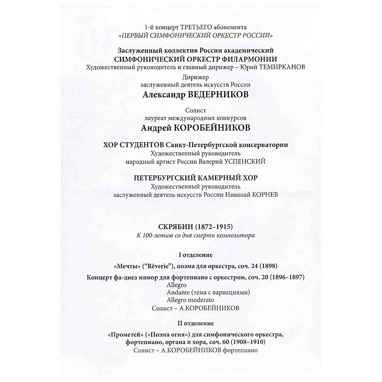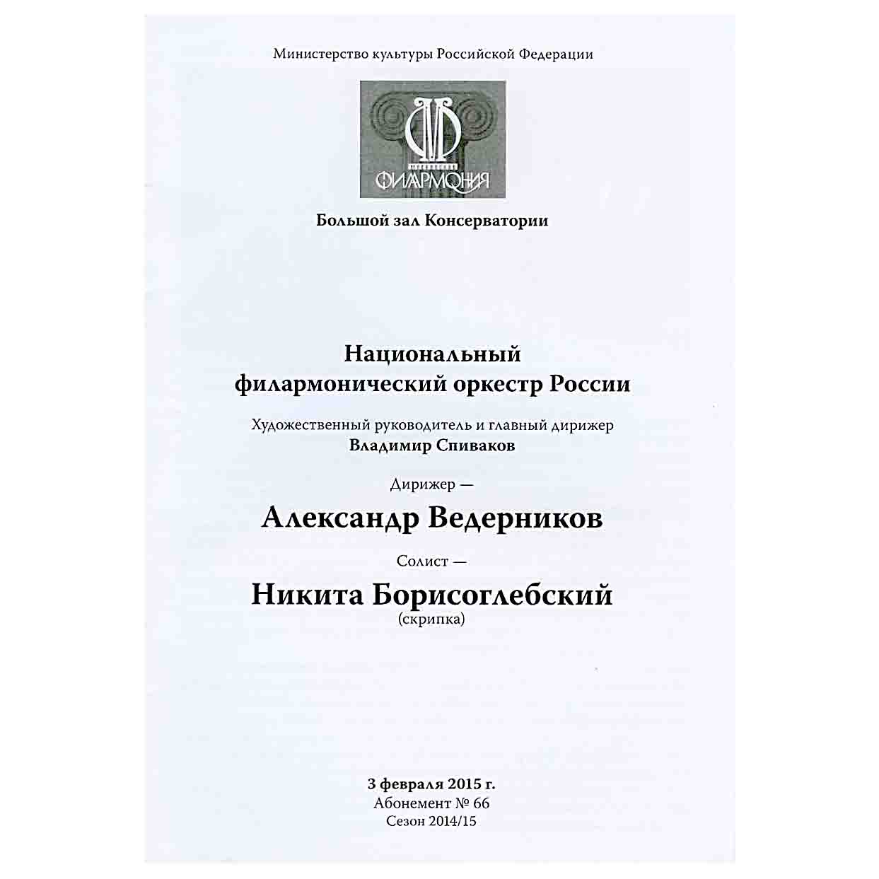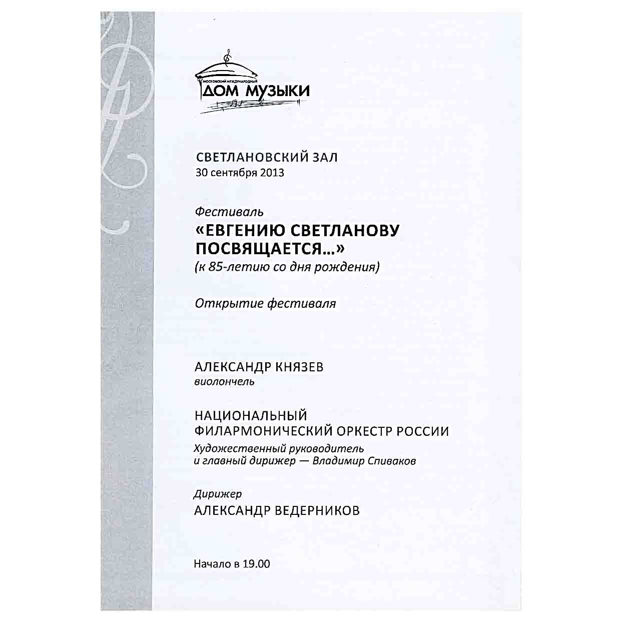 Alexander Vedernikov Concert Programs (2013–2017) | Archive