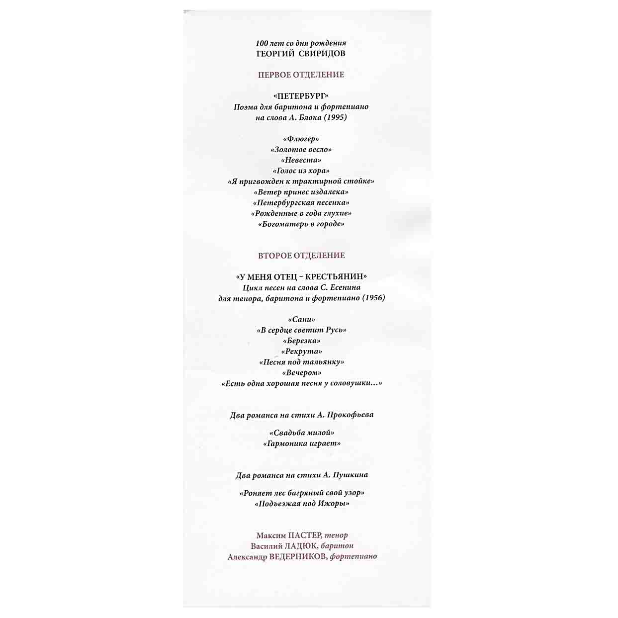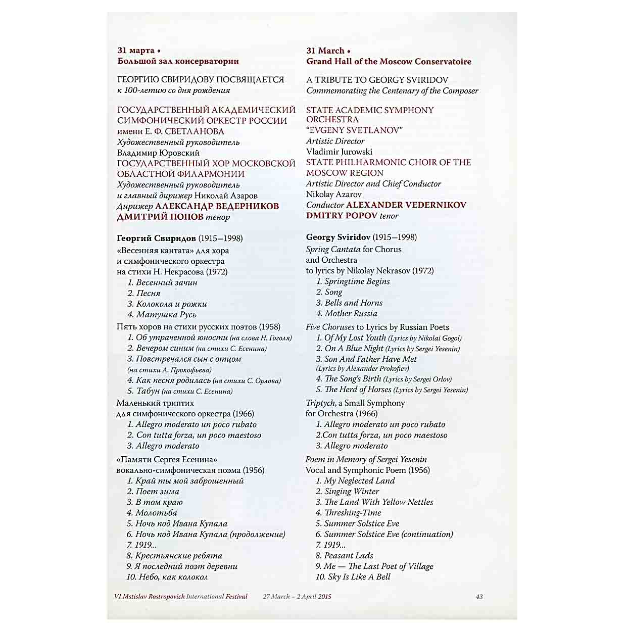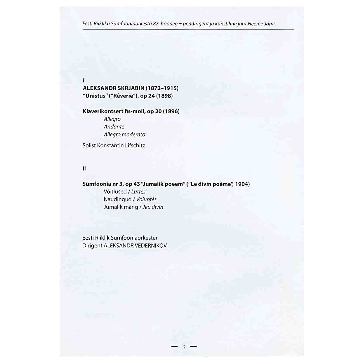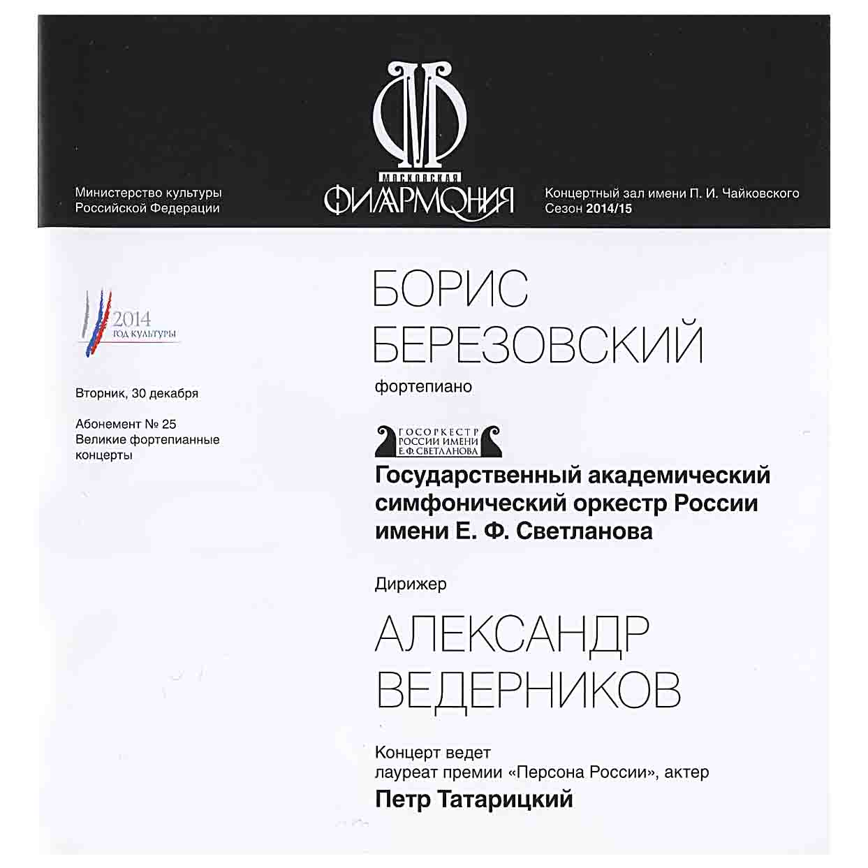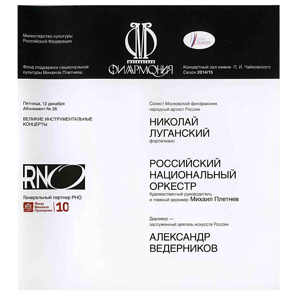 Alexander Vedernikov Concert Programs (2013–2017) | Archive